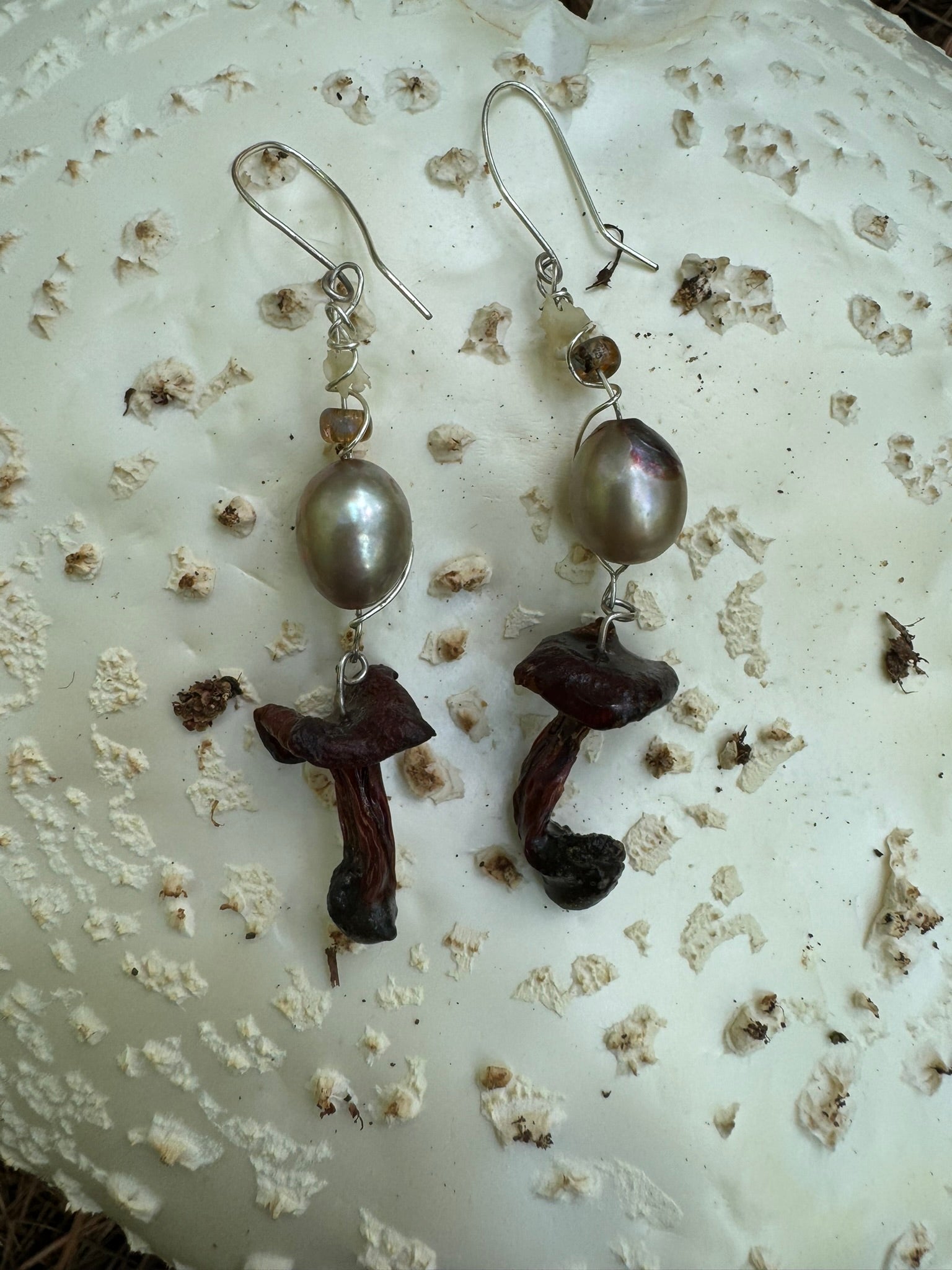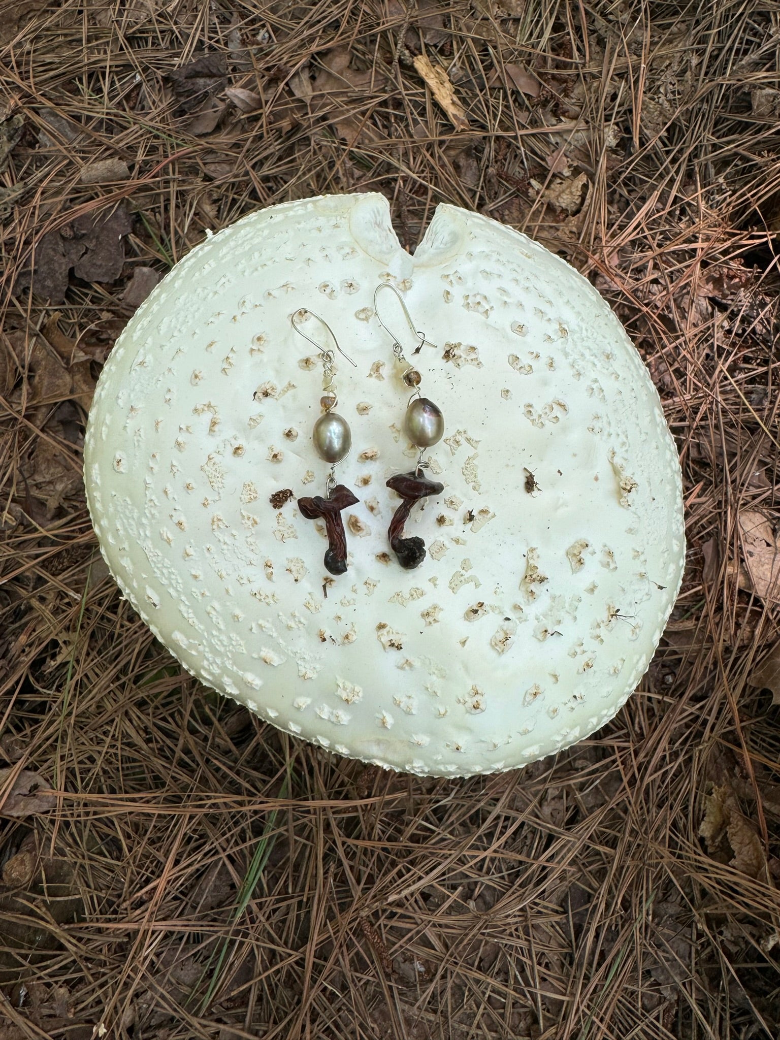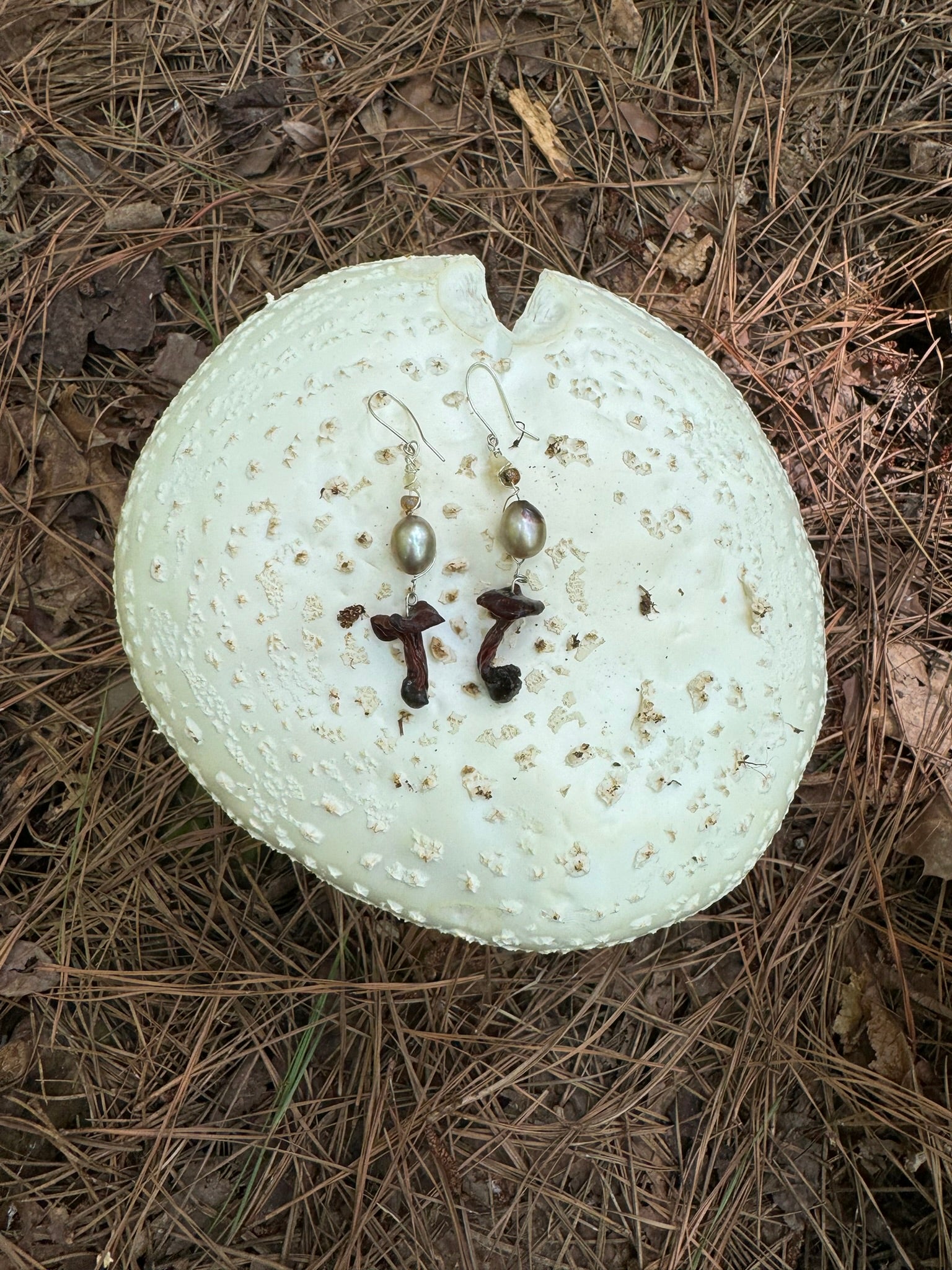 Chanterelle/Rattlesnake Vertebrae/Pearl Earrings Pair